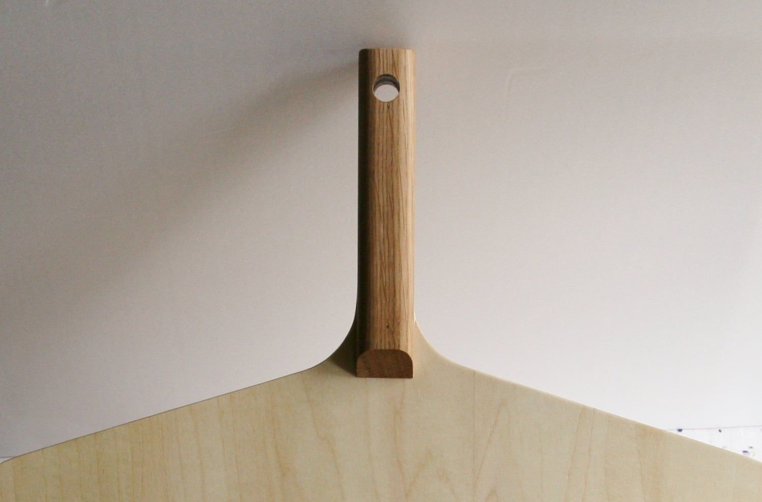 平面部はシナ合板製、にぎりの部分は高級家具などに使用されるナラのムク材を使用しています。